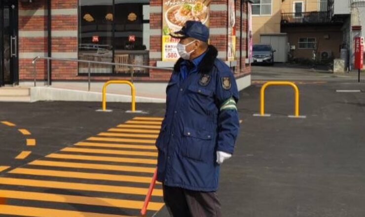 雨の中のクレーン作業における歩行者誘導等デビュー!! 新人君頑張れ!